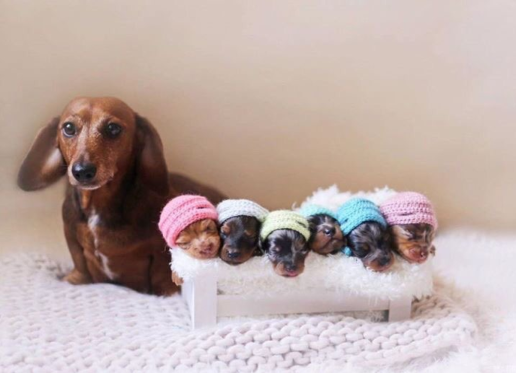 Photography, the proud Dachshund mama poses with her six puppies in a series of photos that have taken the internet by storm.