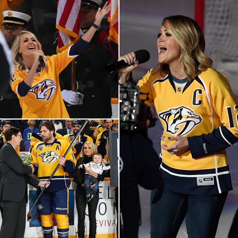 Carrie Underwood delivered an electrifying rendition of «The Star-Spangled Banner» at Nashville’s Bridgestone Arena, igniting the crowd with her powerhouse vocals before Game 3 of the Stanley Cup Playoffs between the Predators and the Blackhawks. As the wife of Predators captain Mike Fisher, Underwood’s deep ties to the Nashville community made her performance all the more meaningful, creating an unforgettable moment for fans.