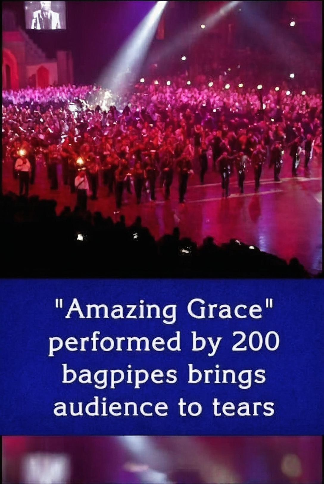 Picture this: a solitary vocalist stands at the center of a circle formed by 200 bagpipers, creating an air of anticipation. As the performance begins, the singer’s soulful rendition of Amazing Grace blends seamlessly with the rich, harmonious sounds of the bagpipes, resulting in an extraordinary and deeply moving musical moment.