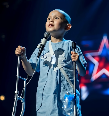 Dressed in a simple hospital gown, with tags still hanging from her, she looked out at the audience with wide, hopeful eyes. Her head was shaved, likely from treatment, but her face radiated joy, not fear. In that moment, it was clear: this wasn’t just a performance. It was a declaration.