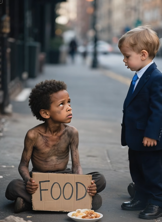 As they turned the corner onto 6th Avenue, Andrew suddenly stopped dead in his tracks. His small hand tightened around Clara’s. “Andrew?” she asked, half-distracted, expecting a plea for ice cream or a complaint about tired feet. But Andrew didn’t answer. His wide eyes were fixed on a figure crouched near a trash bin—a boy, perhaps eight years old, barefoot and shirtless, clutching a battered cardboard sign that read simply, “Food!”
