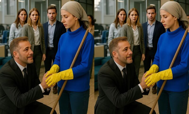 For Three Years, She Didn’t Utter a Single Word — Until the Day a Stranger Walked Into the Bank and Knelt Before the Humble Cleaning Lady, Surprising Everyone Present 😱😢