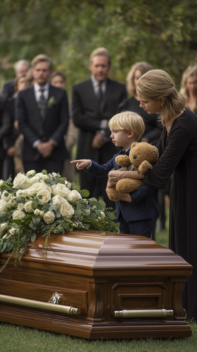 As the funeral bell tolled and the casket began its slow descent, Michael trembled in Clara’s arms. And then, breaking years of silence, he cried out: