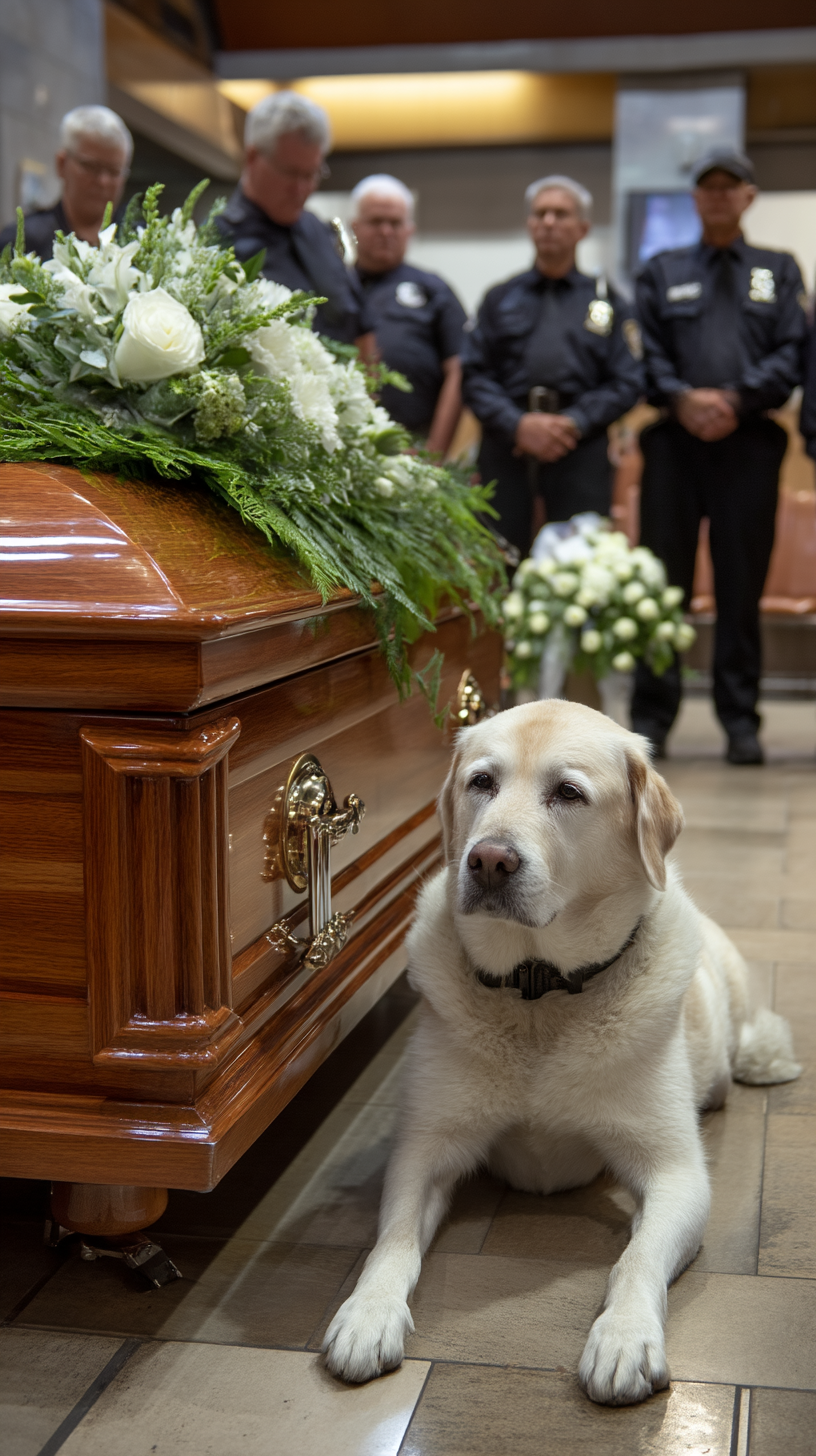 Luna was still at the casket, staring into it. No longer barking—just watching, frozen. I knelt beside her, holding her close, trying to process the impossible.