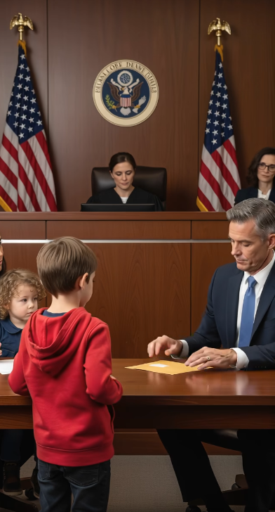 Then, just as I felt myself slipping into that quiet panic where your body is still but your thoughts are screaming, my seven-year-old son stood up. “Mom,” he said loud enough for the courtroom to hear, “can I show the judge the letter I found in Dad’s safe?”