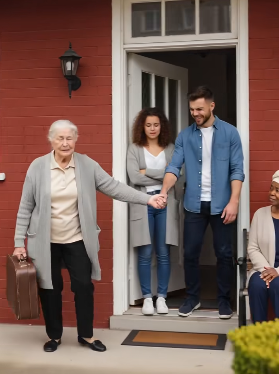 On a chilly autumn afternoon, Martha closed the front door of her son’s house behind her, suitcase in hand. The latch clicked with a finality that echoed in her heart. Her son Derek stood in the doorway, arms crossed, his wife Tanya just behind him, silent but visibly satisfied. “You should have told us, Ma,” Derek had said minutes earlier. “You’ve been eating our food, sitting here all day doing nothing.” Tanya, never one to hide her opinions, added, “We can’t carry your mama too. We’re struggling.”