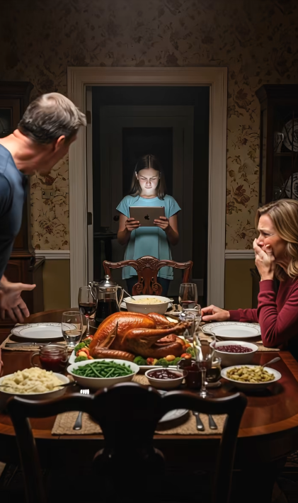 My husband tried to put me down during thanksgiving dinner with his family… but my daughter emma stepped in, tablet in hand, and spoke five words that stunned everyone and left him without a reply.