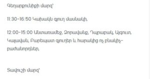 12:00–15:00 — Antaramej, Dzoravank, Dprabak, Aygut, Kalavan, Barepat villages