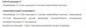 Throughout December 19–23, most regions of the country are expected to experience dry weather without precipitation. In the lowland areas of the Ararat Valley, morning fog is expected during these days, which may slightly reduce visibility, especially in early hours.