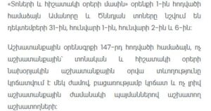 In addition, Article 147 of the Labor Code states that on the day preceding a public holiday or memorial day, the length of the working day is reduced by one hour. This rule does not apply to employees working under reduced working hours or part-time arrangements.