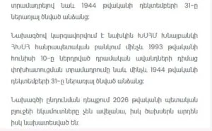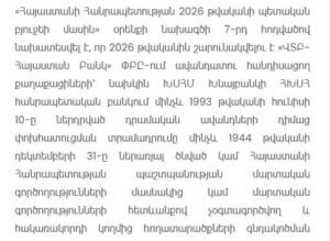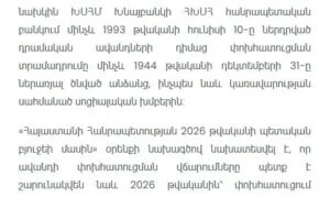 According to Article 7 of the draft law “On the State Budget of the Republic of Armenia for 2026,” compensation payments for citizens who held deposits at VTB Armenia Bank—originally placed in the former USSR Savings Bank of the Armenian SSR before June 10, 1993—will continue in 2026.