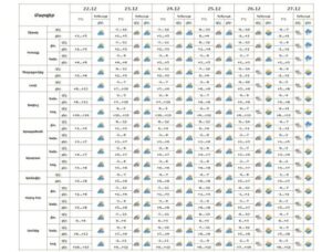 During the daytime on December 22, wind intensification is expected in some regions, with gusts reaching 12–15 m/s