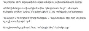 According to the Law on Holidays and Memorial Days, New Year and Christmas holidays are observed from December 31 through January 2 (inclusive), which are designated as non-working days.