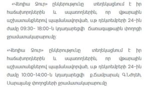Water supply will be suspended from 10:00 to 14:00.