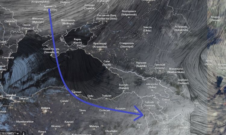 According to Surenyan, the photograph was taken from satellite monitoring data and reflects the structure of the cyclone and its current position in relation to Armenia. At this stage, the post focuses on visual documentation of the weather system rather than forecasting specific outcomes.