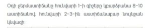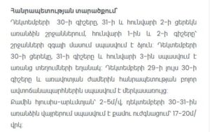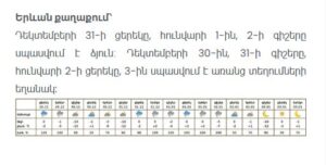 According to the latest weather updates, snow is expected in Yerevan during the following periods: