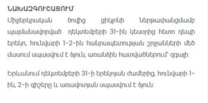 In Yerevan, snowfall is expected to begin during the evening hours of December 31. The precipitation may continue intermittently through January 1, as well as during the night and early morning hours of January 2. Temperatures are projected to remain around seasonal levels, supporting persistent snow cover in parts of the capital.