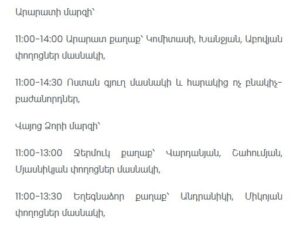 11:00-14:00 – Ararat town: Komitas, Khanjyan, Abovyan streets (partially)