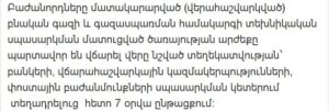 The information will be posted at service points of banks, payment and settlement organizations, and postal offices operating in Armenia.