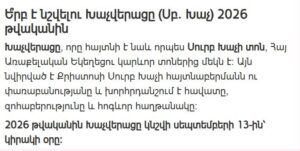 The Exaltation of the Holy Cross, known in Armenian tradition as Khachverats or Surp Khach, is one of the major feast days of the Armenian Apostolic Church. The holiday commemorates the discovery and exaltation of the True Cross and symbolizes faith, sacrifice, and spiritual victory.