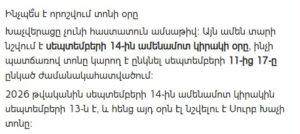 Although it is primarily a religious feast, the day is widely respected and remembered by Armenians both in Armenia and throughout the diaspora.