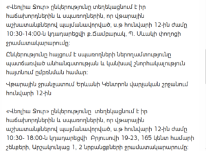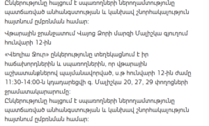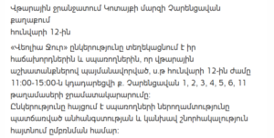 Emergency Water Supply Interruptions on January 12 in Yerevan and Regions