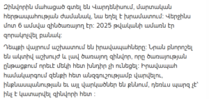 Earlier, on January 14 at around 9:50 a.m., the Ministry of Defense of the Republic of Armenia confirmed that the body of serviceman Vahan Khachaturi Petrosyan from a Defense Ministry military unit was discovered with a gunshot wound.