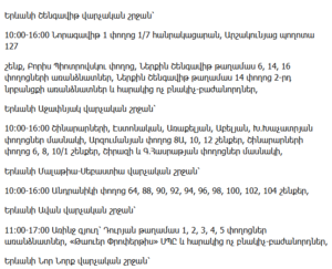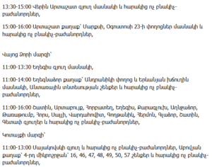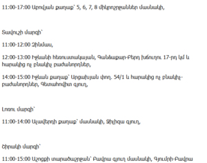 10:00–14:30 – Ijevan city: Spandaryan, Myasnikyan, Artsakhyan and Nalbandyan Streets (partial)