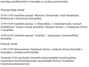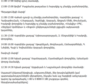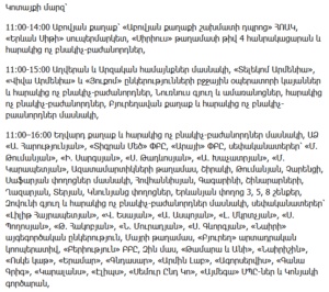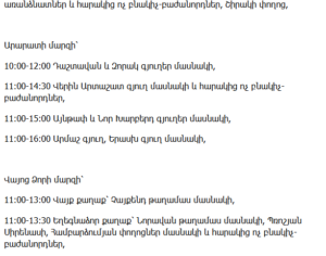 11:00–17:00 – Republic Street 67, Vardanants Streets 7, 9, 11