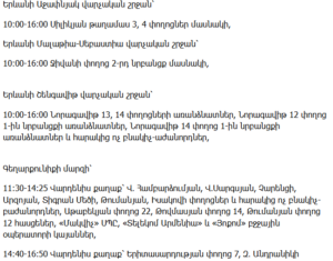 12:00–14:00 – Ijevan city: Artsakhyan and Vasilyan Streets