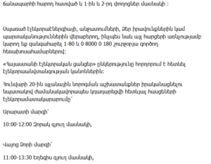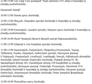 11:00–16:00 – Vardenis city (multiple streets), mobile operator stations and non-residential consumers