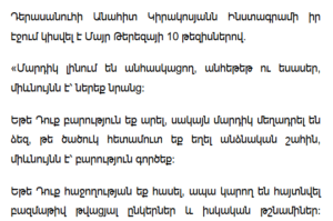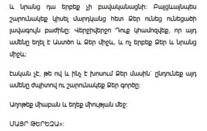 Actress Anahit Kirakosyan shared Mother Teresa’s 10 theses on her Instagram page: