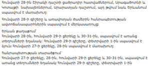 On January 28, fog is expected in the lowland areas of the Shirak Plain, the foothills of Aragatsotn and Kotayk regions, and the Ararat Plain, including Yerevan.