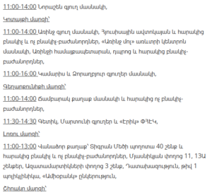Partial outages on Heratsi, Dprotsakanneri, Shirazi, Republic, Araratyan, Azatamartikneri, Yeritasardakan streets