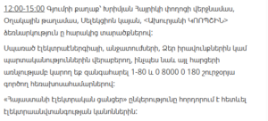 Electric Networks of Armenia CJSC urges customers to follow electrical safety regulations during the outage periods.