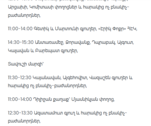 14:30–15:30 Antaramej, Dzoravanq, Dprabak, Aygut, Kalavan, Barepat villages