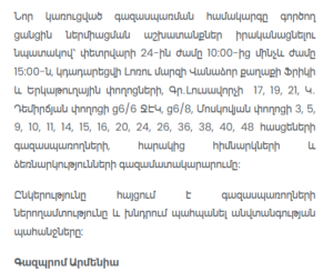 A temporary gas supply interruption is scheduled in several areas of Vanadzor, Lori region, on February 24 from 10:00 AM to 3:00 PM. The planned outage is related to technical works aimed at connecting a newly constructed gas consumption system to the existing distribution network.