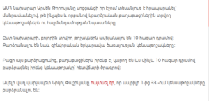 According to the Minister, standard pensions will increase by 10,000 AMD. Pensions for long-serving military personnel are also set to increase.