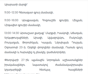 From 1:00 PM to 2:30 PM, parts of Artashat city, including several streets and nearby non-residential consumers, as well as parts of Vostan village, will also be affected.