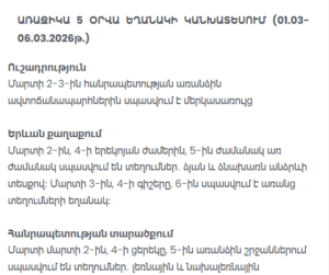 On March 2–3, icy conditions (black ice) are expected on certain road sections across Armenia. Drivers are advised to exercise caution.