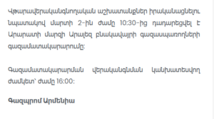 The company Gazprom Armenia informs that due to emergency repair works, gas supply has been suspended in Aralez, located in Ararat Province, starting from 10:30 AM on March 2.