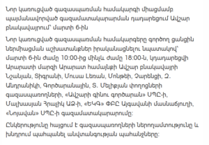 Due to works connecting newly built gas consumption systems to the existing network, gas supply will be temporarily suspended on March 6 from 10:00 AM to 6:00 PM in Avshar, part of the Ararat.