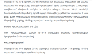 In Yerevan, rain is expected on March 16, during the night of March 17 and again on March 20, while dry weather is forecast for the daytime of March 17 and on March 18–19.