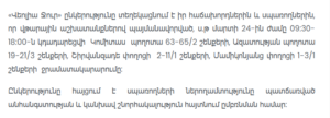 According to the company, water service will be suspended from 9:30 AM to 6:00 PM in several areas, including buildings located on Komitas Avenue (Nos. 63–65/2), Azatutyun Avenue (Nos. 19–21/3), Shirvanzade Street (Nos. 2–11/1), and Mamikonyants Street (Nos. 1–3/1).
