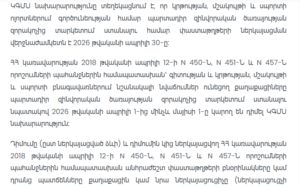 The Ministry of Education, Science, Culture, and Sports of Armenia has announced that the deadline for submitting applications for deferment from mandatory military service is April 30, 2026.