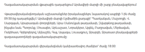 The gas supply was suspended starting from 9:50 AM in parts of Ejmiatsin city, including Patkanyan, Mashtots, V. Sargsyan, and Araratyan streets, as well as Ara Manukyan and Zvartnots districts.