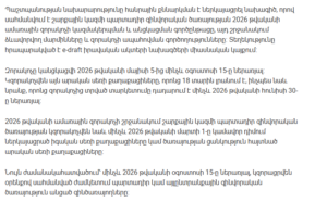 The Ministry of Defense of Armenia has introduced a draft decision for public discussion outlining the organization and implementation of the 2026 summer military conscription.