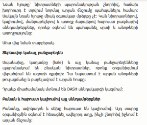 Vegetables like spinach and kale contain natural nitrates that convert into nitric oxide in the body, helping relax blood vessels and improve circulation. They are also part of the DASH diet.