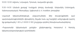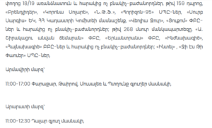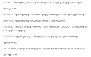 Armavir (11:00–17:00): Parakar, Tairov, Musaler, Ptghunk (partial)