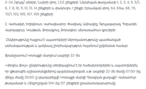 The Veolia Water Armenia announces temporary water supply interruptions due to emergency and preventive works.